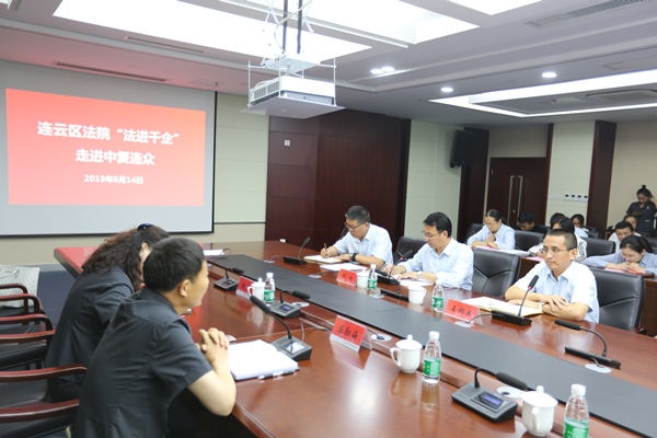 6月14日,連云區(qū)人民法院黨組成員蘇勛海副院長、林楊副庭長等一行蒞臨中復(fù)連眾進(jìn)行法律宣講。中復(fù)連眾副總經(jīng)理王彤兵、公司在連中層干部、員工代表等50余人參加。