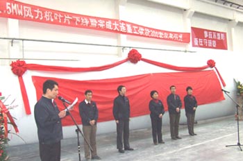 2007年12月30日上午,中復(fù)連眾風(fēng)力機(jī)葉片基地二分廠八號車間熱鬧非凡,中復(fù)連眾數(shù)百名員工隆重集會,慶祝2007年第1000片1.5兆瓦風(fēng)力發(fā)電機(jī)葉片下線暨完成華銳風(fēng)電300套的供貨任務(wù)。中復(fù)連眾集團(tuán)總經(jīng)理喬光輝主持了慶典儀式。