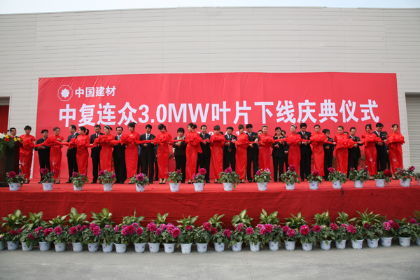 10月18日,連云港中復(fù)連眾復(fù)合材料集團(tuán)的葉片工廠和連云港市文化藝術(shù)中心花團(tuán)錦簇,中復(fù)連眾3兆瓦風(fēng)力葉片下線儀式和20周年慶典隆重舉行。國務(wù)院國資委監(jiān)事會(huì)主任陳琦良,國家工信部規(guī)劃司副司長(zhǎng)劉樹蘋,國家科技部能源處副處長(zhǎng)譚可榮,中國建筑材料集團(tuán)公司總經(jīng)理姚燕,中國建材集團(tuán)外部董事曹德生、王振侯、郭建堂,中國建筑材料聯(lián)合會(huì)副會(huì)長(zhǎng)陳國慶,中國建材報(bào)社社長(zhǎng)陳才來,中國復(fù)合材料集團(tuán)有限公司董事長(zhǎng)張定金,華銳風(fēng)電科技股份有限公司董事長(zhǎng)、總裁韓俊良,金風(fēng)科技股份有限公司總裁郭健等參加了3兆瓦葉片下線儀式和中復(fù)連眾成立20周年慶典。