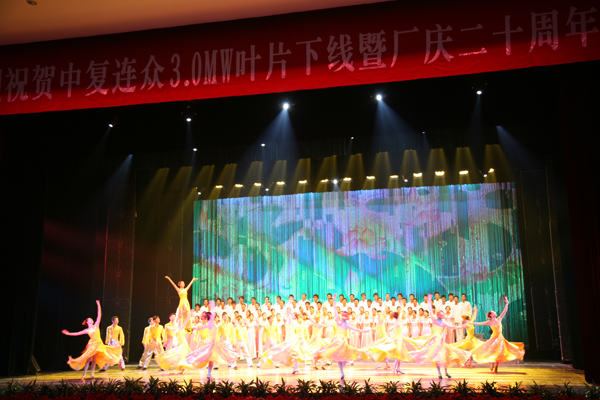 國家發(fā)改委能源研究所副所長(zhǎng)李俊峰,中國可再生能源學(xué)會(huì)風(fēng)能專業(yè)委員會(huì)秘書長(zhǎng)秦海巖,中國農(nóng)機(jī)協(xié)會(huì)風(fēng)力機(jī)械分會(huì)秘書長(zhǎng)祁和生,中國建材雜志社秦春雨,來自沈陽、酒泉和包頭的地方領(lǐng)導(dǎo),中國建材集團(tuán)及其下屬企業(yè)的領(lǐng)導(dǎo),以及包括上海電氣、東方汽輪機(jī)公司、湘電風(fēng)能等在內(nèi)的中復(fù)連眾國內(nèi)外合作伙伴及客戶、員工等歡聚一堂。南京軍區(qū)前線文工團(tuán)為中復(fù)連眾20周年慶典獻(xiàn)上了精彩文藝節(jié)目,共?!爸袕?fù)連眾輝煌20年”。慶典在中復(fù)連眾數(shù)百名員工的合唱中“風(fēng)啊風(fēng),吹啊吹,我的翅膀跟著飛……”推向了高潮。