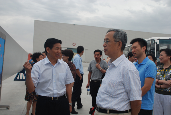 7月15-16日,中國建材聯(lián)合會四屆七次會長全體會議在甘肅酒泉召開。會議期間,中國建筑材料聯(lián)合會會長張人為、國務(wù)院國有資產(chǎn)監(jiān)督管理委員會國有大型企業(yè)監(jiān)事會原主席喬龍德、中國建材集團董事長宋志平及其他與會代表視察了中復(fù)連眾風(fēng)機葉片外埠生產(chǎn)基地之一—中復(fù)連眾(酒泉)公司。中國復(fù)材集團董事長、總經(jīng)理張定金陪同考察。