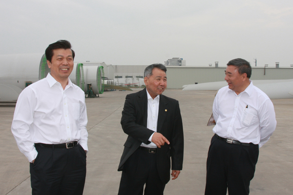 考察過程中,宋志平介紹到中復連眾目前已發(fā)展成為全球前三、亞洲最大的風力機葉片制造商,連續(xù)三年國內(nèi)市場占有率第一,葉片累積銷售5000套,裝機8000MW,各種規(guī)格的葉片在國內(nèi)外200多個風場安裝運行。中復連眾在研發(fā)5MW以上和海上風電葉片方面積極創(chuàng)新發(fā)展,形成了技術(shù)領(lǐng)先的競爭優(yōu)勢。成功收購德國NOI公司,設立海外研發(fā)中心SINOI,奠定了國際化的良好基礎。