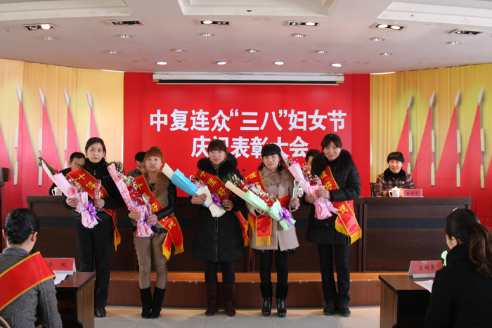 3月7日下午,五樓會(huì)議室里鮮花簇?fù)?、春意融融,中?fù)連眾隆重舉行“三八節(jié)”慶祝表彰大會(huì),授予二十位女職工“十佳好兒媳”、“十佳賢內(nèi)助”稱(chēng)號(hào)。