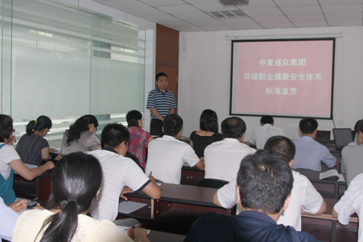 2009年7月16日,中復(fù)連眾集團(tuán)舉行了環(huán)境(ISO14001)和職業(yè)健康安全(OHSAS18001)管理體系標(biāo)準(zhǔn)宣貫,標(biāo)志著公司兩標(biāo)一體認(rèn)證工作進(jìn)入實質(zhì)性階段,本次貫標(biāo)由省內(nèi)著名指導(dǎo)老師主講,喬光輝總經(jīng)理作重要動員,全體主管以上人員和內(nèi)審員參加了培訓(xùn)學(xué)習(xí)。