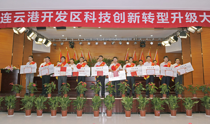 7月27日,市開發(fā)區(qū)科技創(chuàng)新轉(zhuǎn)型升級大會隆重召開,會議對2011年度開發(fā)區(qū)企業(yè)十大科技創(chuàng)新成果、優(yōu)秀科技創(chuàng)新平臺、專利擁有量十強企業(yè)、實施品牌戰(zhàn)略十佳企業(yè)、優(yōu)秀商標、高層次人才進行了表彰。中復(fù)連眾包攬了除優(yōu)秀商標之外的其他5項大獎。公司副總經(jīng)理劉衛(wèi)生出席會議并上臺領(lǐng)獎。