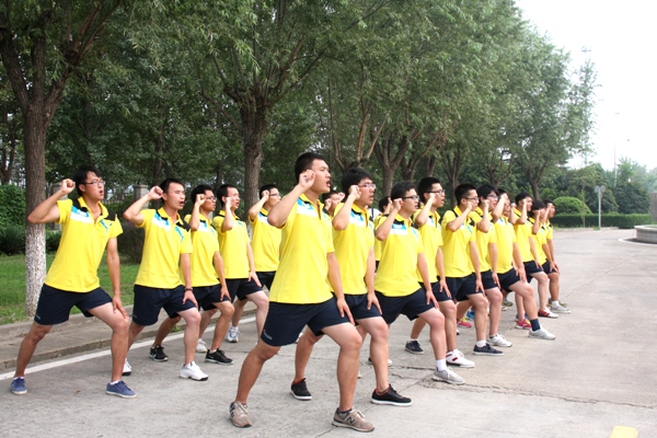 全體人員被隨機分為夢十二隊和雄鷹隊兩隊,設計各隊的口號和隊歌?;顒诱介_始前,教練帶領全體學員進行簡單的立正、稍息訓練,之后開始了絕地救援、信任背摔、時間管理、穿越電網(wǎng)等一系列拓展訓練活動。