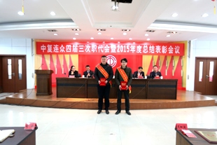 副總經(jīng)理、工會(huì)主席王彤兵作了題為《凝心聚力 服務(wù)發(fā)展 努力開創(chuàng)中復(fù)連眾工會(huì)工作新局面》的工會(huì)工作報(bào)告。回顧總結(jié)了2015年在推進(jìn)民主管理、建設(shè)職工隊(duì)伍、弘揚(yáng)勞模精神、構(gòu)建勞動(dòng)安全保障機(jī)制、展現(xiàn)職工精神風(fēng)貌、職工幫扶體系建設(shè)等方面取得的成效,深刻剖析了存在的不足,并就2016年工會(huì)工作布置了四個(gè)方面的工作:一是進(jìn)一步組織動(dòng)員職工,在融入中心工作上下功夫;二是進(jìn)一步教育引導(dǎo)職工,在堅(jiān)定理想信念上下功夫;三是進(jìn)一步聯(lián)系服務(wù)職工,在推進(jìn)民主管理上下功夫;四是進(jìn)一步履行職責(zé),在加強(qiáng)工會(huì)自身建設(shè)上下功夫。