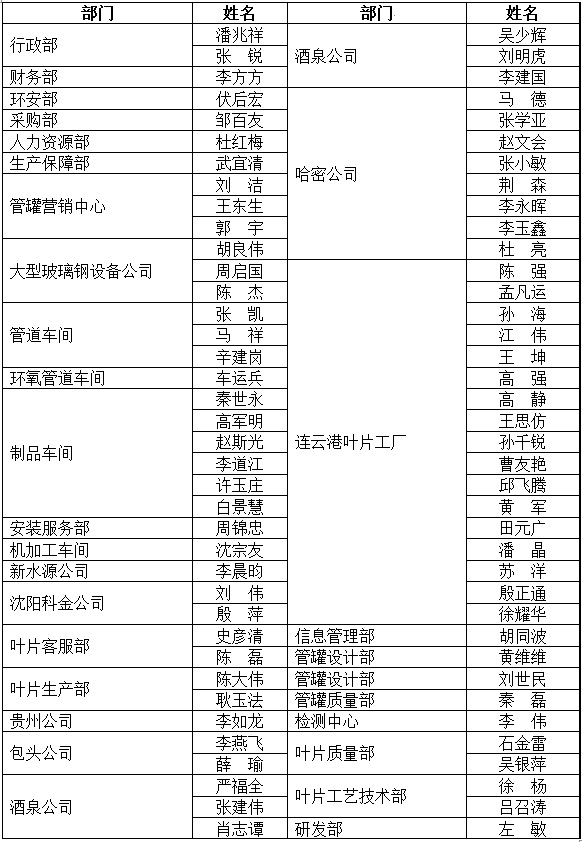會(huì)議還隆重表彰了中復(fù)連眾2015年度10個(gè)先進(jìn)集體、2名標(biāo)兵和76名先進(jìn)個(gè)人,表彰了“超大口徑純玻璃鋼管道鎖緊接頭的研發(fā)”、“輥涂工藝實(shí)施”等34項(xiàng)科學(xué)技術(shù)獎(jiǎng)。