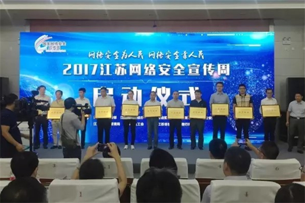2017年9月18日,江蘇省網(wǎng)絡(luò)安全宣傳周在南京啟動。啟動儀式發(fā)出了網(wǎng)絡(luò)安全倡議書,向?qū)W生、企業(yè)、網(wǎng)民代表贈送了網(wǎng)絡(luò)安全讀本,并為2016年江蘇省兩化融合網(wǎng)絡(luò)信息安全示范企業(yè)授牌,中復(fù)連眾位列其中。