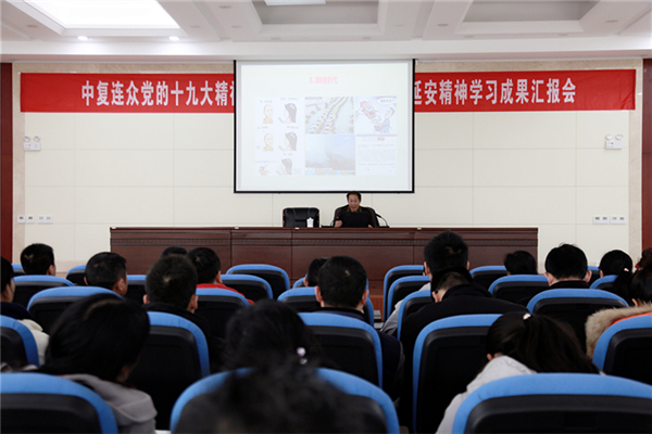 在各黨支部原原本本、原汁原味學習黨的十九大報告和《中國共產(chǎn)黨章程(修正案)》的基礎上,公司黨委邀請市委黨校馬列教研室主任許繼青教授作題為《奪取新勝利的政治宣言和行動綱領——學習黨的十九大精神解讀》的專題輔導。許繼青教授從新時代、新使命、新理論、新征程四個方面,對十九大報告進行梳理和講解。透徹深入的宣講,鮮活生動的解讀,讓與會者對十九大精神的脈絡和內(nèi)涵有了更清晰的認識。大家表示,要積極發(fā)揚共產(chǎn)黨員帶頭學習、自覺學習、深入學習的表率作用,用習近平新時代中國特色社會主義思想把握政治方向、指導實踐、推動工作。