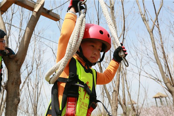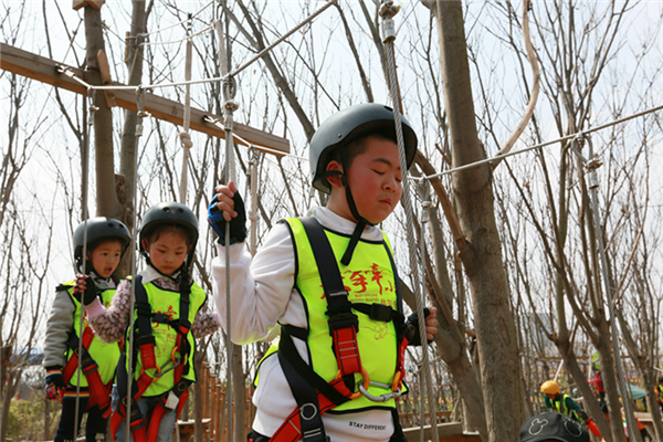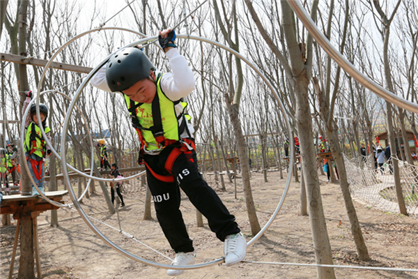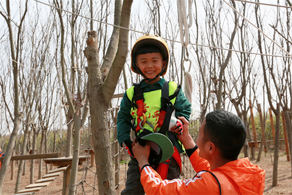 活動當天,所有參加人員身穿統(tǒng)一服裝來到葉片事業(yè)部連云港工廠,葉片事業(yè)部的領(lǐng)導們?yōu)樾∨笥杨C發(fā)了紀念品以示歡迎。他們先后參觀了公司的葉片實驗臺、16#生產(chǎn)車間及多功能展廳。孩子們看到展廳里隨著音視頻轉(zhuǎn)動的葉片,一個個興奮地爭先合影。一個小朋友看到多維葉片模型直呼是爸爸做的,逗得旁人一陣笑。隨后,所有人員乘車來到拓展基地開展戶外親子活動,活動共準備了3個節(jié)目:叢林探險、互動小游戲、動物表演秀。叢林探險的每個環(huán)節(jié)都充滿挑戰(zhàn),小朋友們需要在父母的支持與鼓勵下逐級過關(guān),小游戲環(huán)節(jié)則需要孩子們獨立完成,汗水與歡笑在孩子們紅撲撲地小臉上洋溢著,最終每個孩子都獲得了工作人員精心準備的獎品,個個滿載而歸。一位來自一線的員工說道,自己平時工作忙,很少有機會陪孩子玩,在這次親子活動中,可以和孩子一起互動玩游戲、看表演,感覺特別幸福。