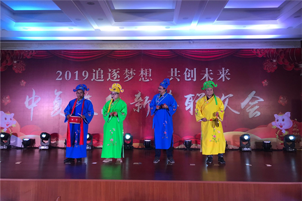 2019年注定是不平凡的一年,今年是新中國成立70周年,也是中復連眾成立30周年,企管部的楊映偉、王建、王秋、車凱表演的三句半《回顧2018》和國際部的王彬蘇、盧保國帶來的朗誦《筑夢路上勇者無懼》回顧了2018年祖國熱點事件和公司大事記,公司副總經理王彤兵帶領他的“十年團隊”演唱的歌曲《東方之珠》,從老員工的視角表達了對公司的濃厚情感。