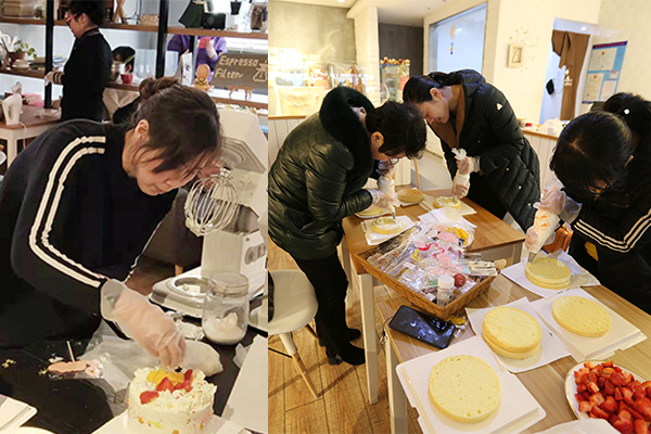 蛋糕烘焙對于公司女員工來說是一項(xiàng)全新的體驗(yàn),大家興致勃勃,在專業(yè)烘焙師傅的指導(dǎo)下,按照腦中構(gòu)思已久的造型進(jìn)行制作。大家相互幫助、相互贊美,打奶油、裱花、裝飾……每個(gè)人忙得不亦樂乎,經(jīng)過近兩個(gè)小時(shí)的時(shí)間,一個(gè)個(gè)創(chuàng)意十足的作品展現(xiàn)在大家的眼前。