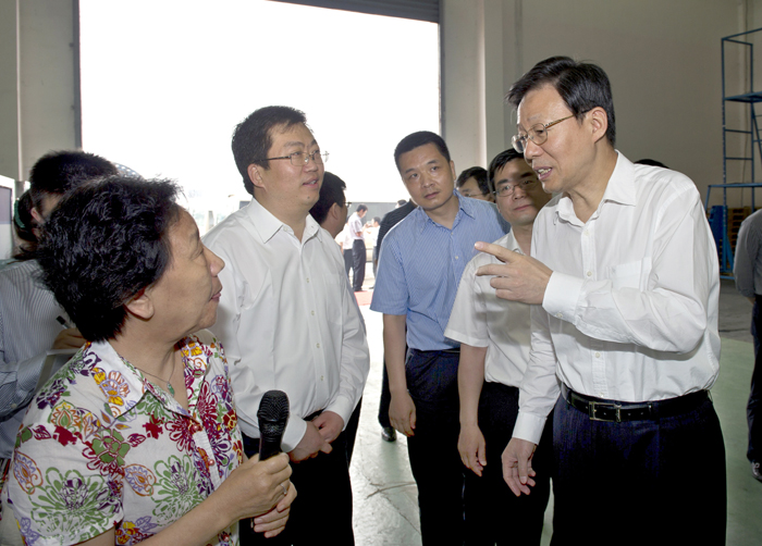 6月7日上午,在連云港市市長楊省世,市委常委、連云港經(jīng)濟(jì)技術(shù)開發(fā)區(qū)黨工委書記關(guān)永健的陪同下,江蘇省省長李學(xué)勇冒雨前往中復(fù)連眾,視察中復(fù)連眾科技創(chuàng)新情況。中國復(fù)材集團(tuán)副總經(jīng)理、中復(fù)連眾董事長任桂芳,中復(fù)連眾總經(jīng)理喬光輝向李學(xué)勇省長做了匯報。