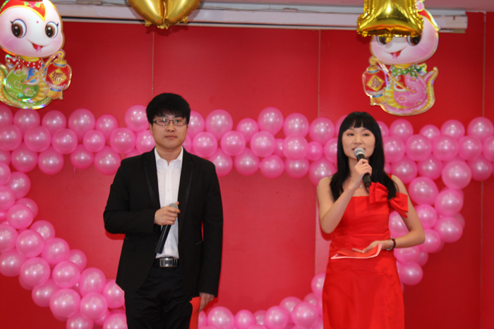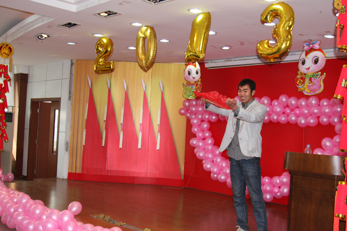 聯(lián)歡會(huì)在管罐營(yíng)銷部范賢浩MJ獨(dú)舞《DANGEROUS》中精彩開(kāi)幕,掀起一個(gè)小高潮;信息管理部周福超一曲《青花瓷》委婉動(dòng)聽(tīng),帶我們感受中國(guó)風(fēng)的魅力;范賢浩和信息部張哲寧踏著《Dreams come true》的節(jié)奏,給觀眾不一樣的精彩;管罐營(yíng)銷部陳冠升傾情演繹了劉歡《我和你》、楊坤《無(wú)所謂》和汪峰《我愛(ài)你中國(guó)》經(jīng)典歌曲,模仿精彩到位、惟妙惟肖。贏得全場(chǎng)最高分貝尖叫的當(dāng)屬財(cái)務(wù)部蘇茗茗,她的獨(dú)舞《十分鐘》,揮灑自如,酷勁十足,新一代 “舞后”應(yīng)運(yùn)而生;葉片營(yíng)銷部王睿妍、管罐國(guó)際部吳瑜和范賢浩分別帶來(lái)了德文歌曲《即使在雨中》、俄文歌曲《喀秋莎》和韓文歌曲《大長(zhǎng)今主題曲》,讓我們感嘆中復(fù)連眾真是藏龍臥虎地;功夫不負(fù)有心人,經(jīng)過(guò)一個(gè)多月的辛苦排練,黃偉、潘慧等六位美女的舞蹈《SMILE》,終于贏得了陣陣喝彩;郭偉、孫誠(chéng)的歌曲《溫柔》,配合默契,唱功一流;由李成威、劉世民、譚倩倩、張丹表演的《拜年》講述了一對(duì)小夫妻回家拜年的爆笑經(jīng)歷,笑料十足;聯(lián)歡會(huì)在《恭喜發(fā)財(cái)》中落下帷幕。