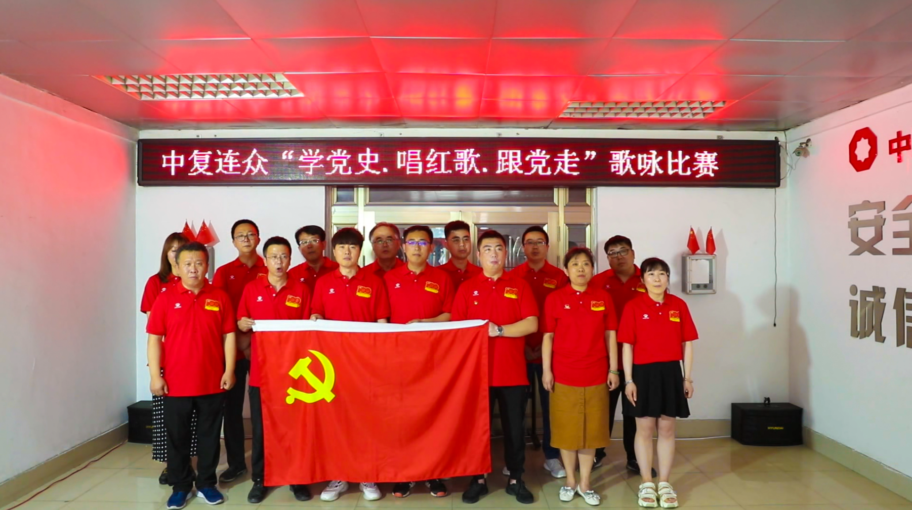 連眾好聲音,頌歌給黨聽(tīng)。整場(chǎng)比賽高舉旗幟、凝心聚力,既是一場(chǎng)不忘初心的精神洗禮,又是一次牢記使命的光輝啟程。活動(dòng)最后,大家起立齊唱《歌唱祖國(guó)》,唱響新時(shí)代主旋律,深化黨史學(xué)習(xí)教育,用文化凝聚力量,用歌聲放飛夢(mèng)想,在紅歌中重溫黨的百年歷史,共憶百年黨史的波瀾壯闊,更加堅(jiān)定理想信念,用實(shí)際行動(dòng)向中國(guó)共產(chǎn)黨百年華誕獻(xiàn)禮!