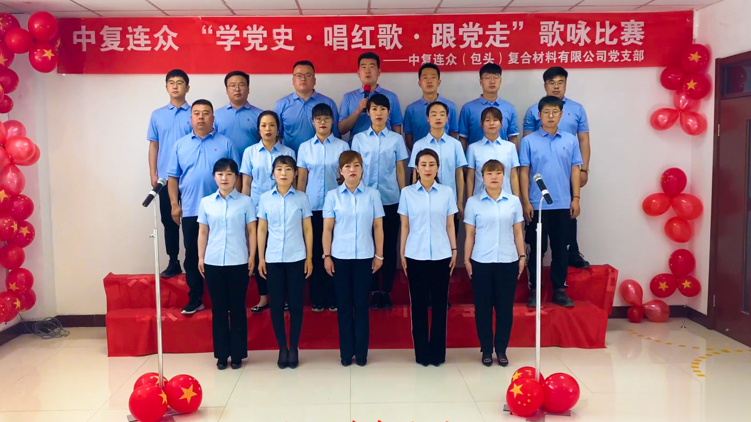 為慶祝中國(guó)共產(chǎn)黨成立100周年,推進(jìn)黨史學(xué)習(xí)教育深入人心,進(jìn)一步激發(fā)公司黨員干部職工愛(ài)黨愛(ài)國(guó)熱情,6月19日,中復(fù)連眾舉辦“學(xué)黨史 唱紅歌 跟黨走”歌詠比賽。中國(guó)復(fù)材副總經(jīng)理、中復(fù)連眾黨委書(shū)記、董事長(zhǎng)喬光輝,中國(guó)復(fù)材黨委副書(shū)記、紀(jì)委書(shū)記何繼秀,中復(fù)連眾總經(jīng)理南洋等領(lǐng)導(dǎo)班子成員、各支部黨員、積極分子共200多人參加?;顒?dòng)全程直播,在連黨支部現(xiàn)場(chǎng)參賽,外地黨支部以視頻形式參賽。