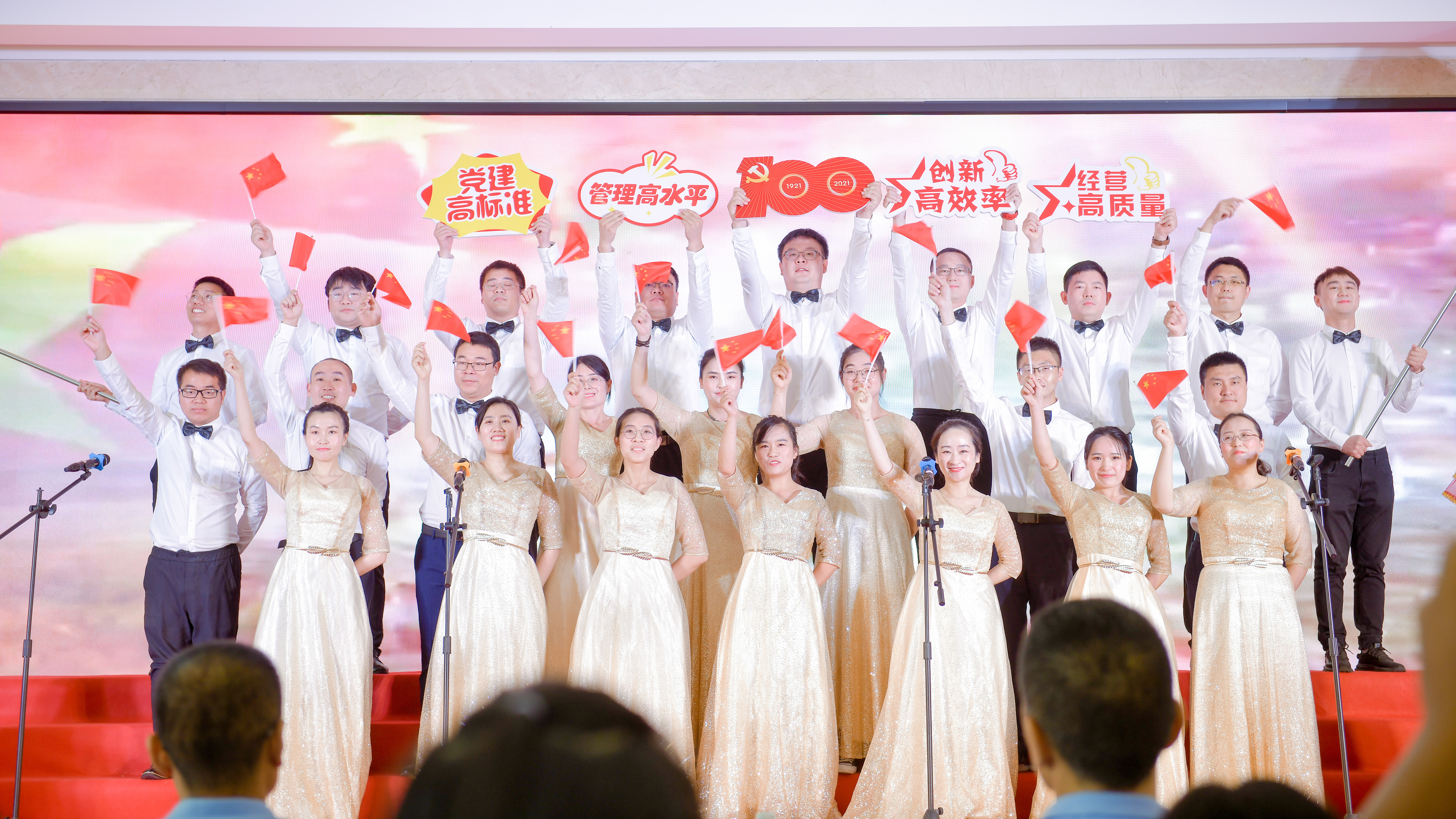 一次次充滿激情的演唱不斷點(diǎn)燃現(xiàn)場(chǎng)氣氛,一曲曲動(dòng)聽(tīng)悅耳的歌曲不斷贏得陣陣掌聲。公司全級(jí)次15個(gè)黨支部以洪亮的歌聲、特色的服飾、靚麗的面貌、飽滿的熱情獻(xiàn)禮建黨百年,深情歌頌中國(guó)共產(chǎn)黨的豐功偉績(jī),表達(dá)對(duì)偉大祖國(guó)和共產(chǎn)黨的熱愛(ài)。經(jīng)過(guò)激烈角逐,第一黨支部以總分19.58分的好成績(jī)列居第一。